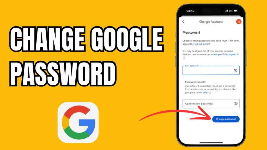 Go to Google Account Settings, select “Security,” click “Password,” verify your identity, and create a strong new password.